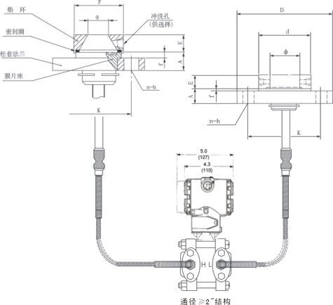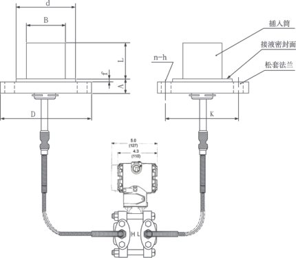 AK-3051DP雙法蘭液位變送器是一種通過安裝在管道或容器上的遠(yuǎn)傳裝置來感受被測(cè)壓力,該壓力經(jīng)毛細(xì)管內(nèi)的灌充硅油(或其它的液體)傳遞至變送器的主體,然后由變送器主體內(nèi)的δ室和放大線路板,將壓力或差壓轉(zhuǎn)換4~20mA.DC信號(hào)輸出(參見結(jié)構(gòu)原理圖)。 |