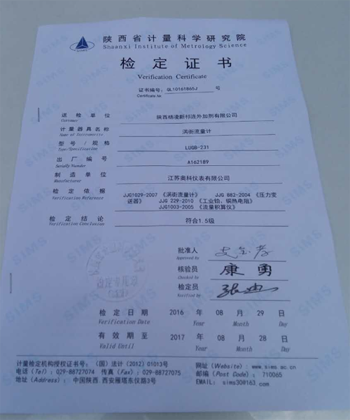 奧科蒸汽流量計通過陜西計量檢測為合格產品
