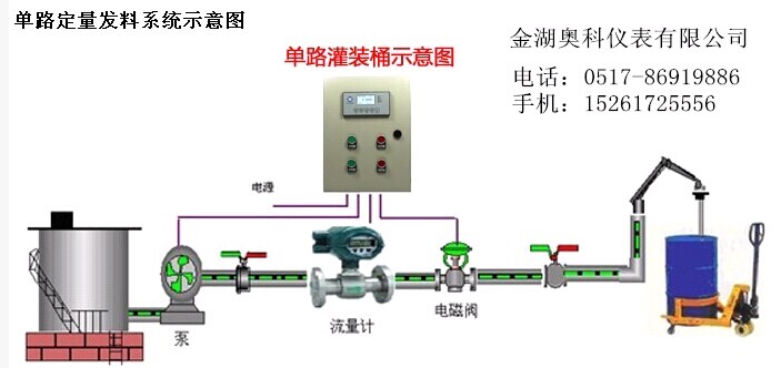 江蘇奧科儀表有限公司提供本方案主要根據(jù)流量計反饋給定量控制儀的脈沖流量信號,當(dāng)流量累計流量達(dá)到設(shè)定的數(shù)值(定量值),定量控制儀會給電磁閥門或泵一個開關(guān)信號,已達(dá)到對閥門、泵的啟動和關(guān)閉控制。實現(xiàn)對加料 的自動和手動控制。該系統(tǒng)精度高,操作簡單,可現(xiàn)場校準(zhǔn)目前很多企業(yè)都會用到或者是都需要改進(jìn)的項目之一,它把具有操作簡便易學(xué),顯示直觀,手動控制流量或自動控制流量相結(jié)合等特點。特別適用于油田摻油、摻水、摻藥、配料、定量注水及各種液體的定量控制。目前一些現(xiàn)在仍采用人工操作罐裝/打料,同時也不想投入太多成本,就想提高工作效率的企業(yè)建議采用本系統(tǒng)。